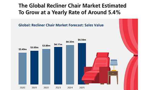 Life is becoming more and more hectic and stressful, and sometimes stress can lead to serious physical and mental health problems. An appreciation for a healthy lifestyle is important for counteracting negative effects such as back pain, high blood pressure and headaches. Recliner chairs are a smart, simple method to reduce daily stress and promote relaxation in everyday life. From 2014 to 2019, the global comfort-recliner furniture market share increased by 7.2% to reach a value of $3.731 million USD.